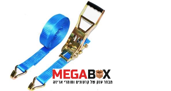 רצועת קשירה – רצט צבע כחול עשויי מפוליאסטר עמיד למים ולא נמתח, מתאים להצמדה והידוק במשאיות וברכבים פרטיים הראצט באורך חמש מטר ומיועד לעמוד בלחץ עד שלושת רבעי טון.